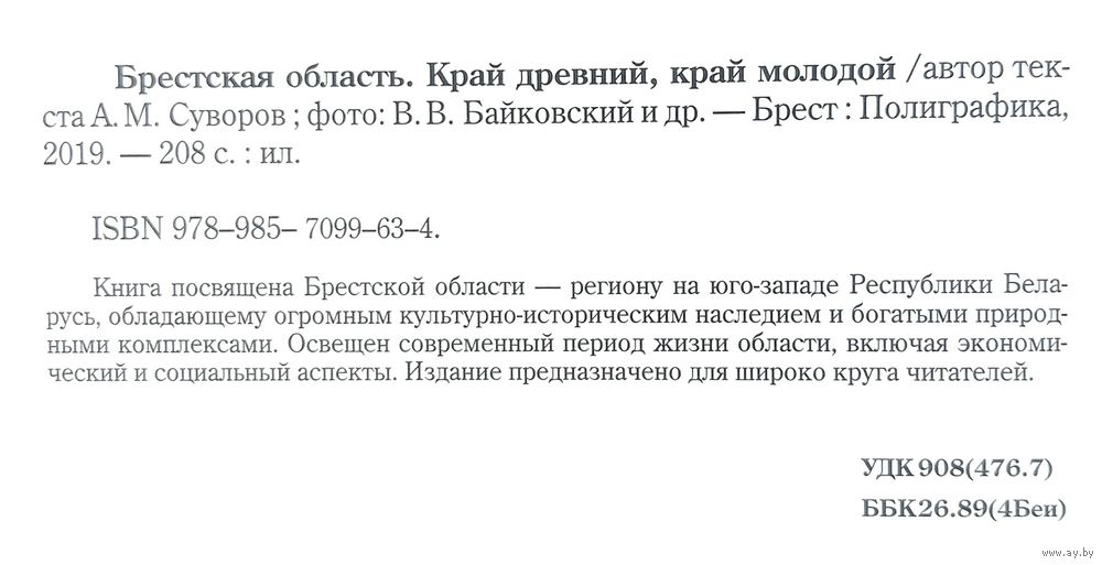 Книга Посвящена Брестской Области – Региону на Юго - Западе Республики Беларусь с более чем 85 - летней Историей.