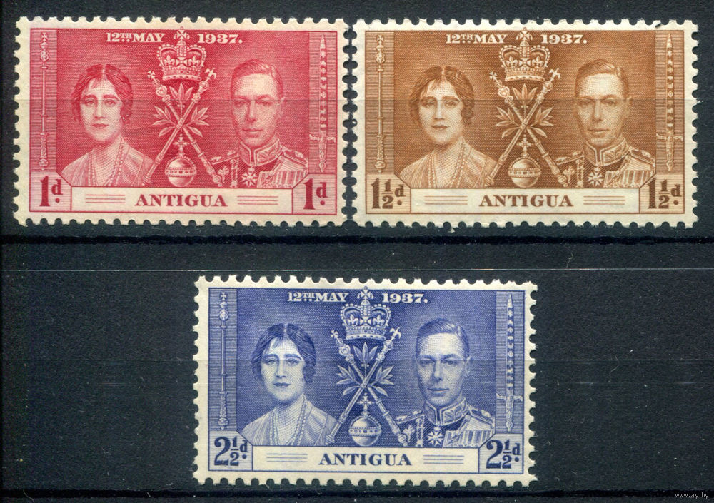 Британские колонии - Антигуа - 1937г. - коронация короля Георга VI и королевы Елизаветы - 3 марки - полная серия, MH, последняя марка с незначительной вмятинкой (не видна на лицевой стороне) [Mi 75-77]. #2-Bc-D-KS-1