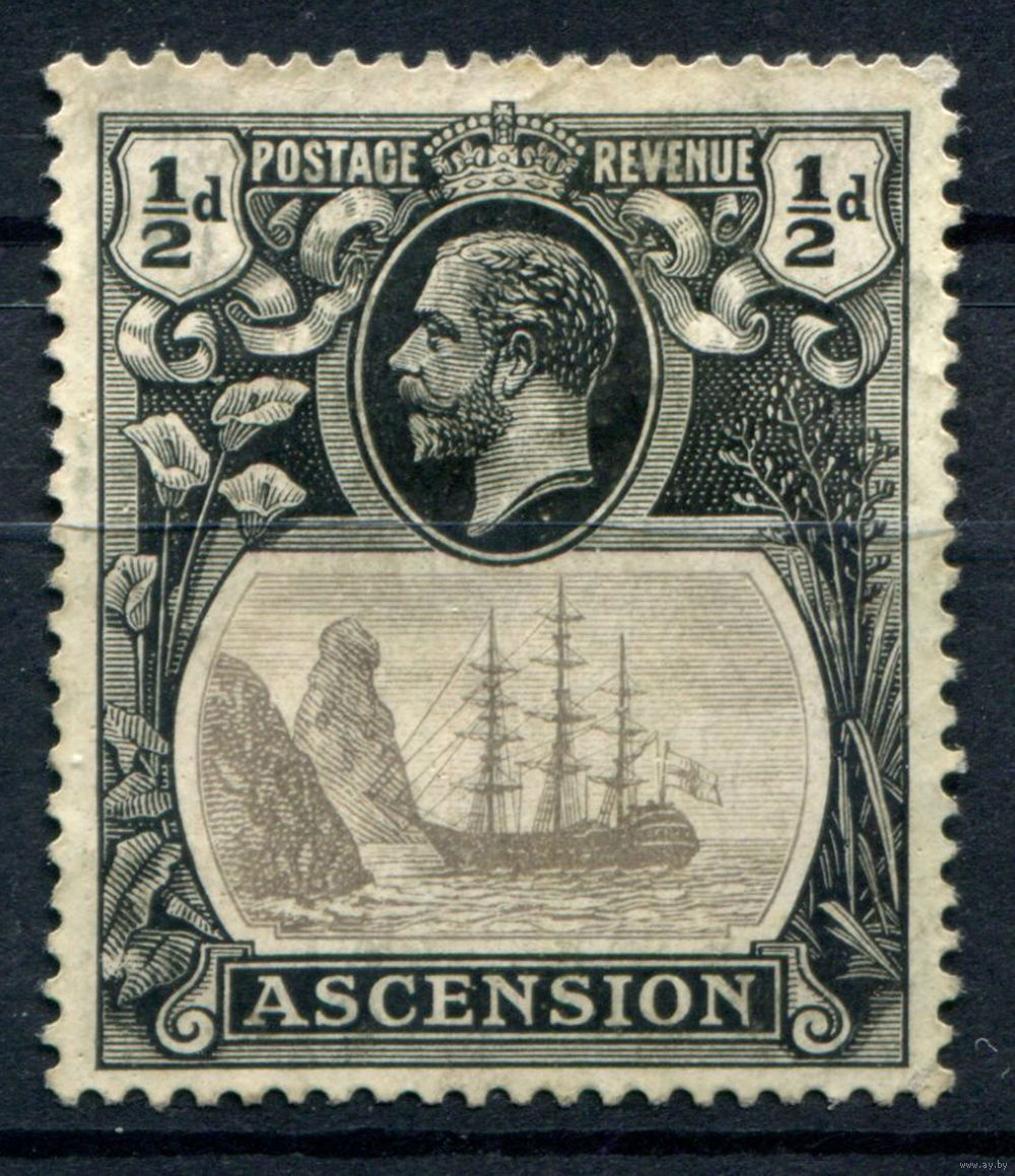 Британские колонии - Асенсьон (о-в Вознесения) - 1924/33г. - корабль, 1/2 р - 1 марка - чистая, без клея, пятна на лицевой стороне [Mi 10]. #3-WB-96-B-2