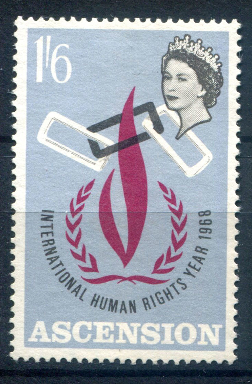 ![Британские колонии - Асенсьон (о-в Вознесения) - 1968г. - международный год прав человека, 1 6 Sh - 1 марка - чистая, без клея [Mi 116]. #3-WB-96-B-2](https://s2-lot.aystatic.by/550x510/162/133/5040/5040133162_0.jpg)