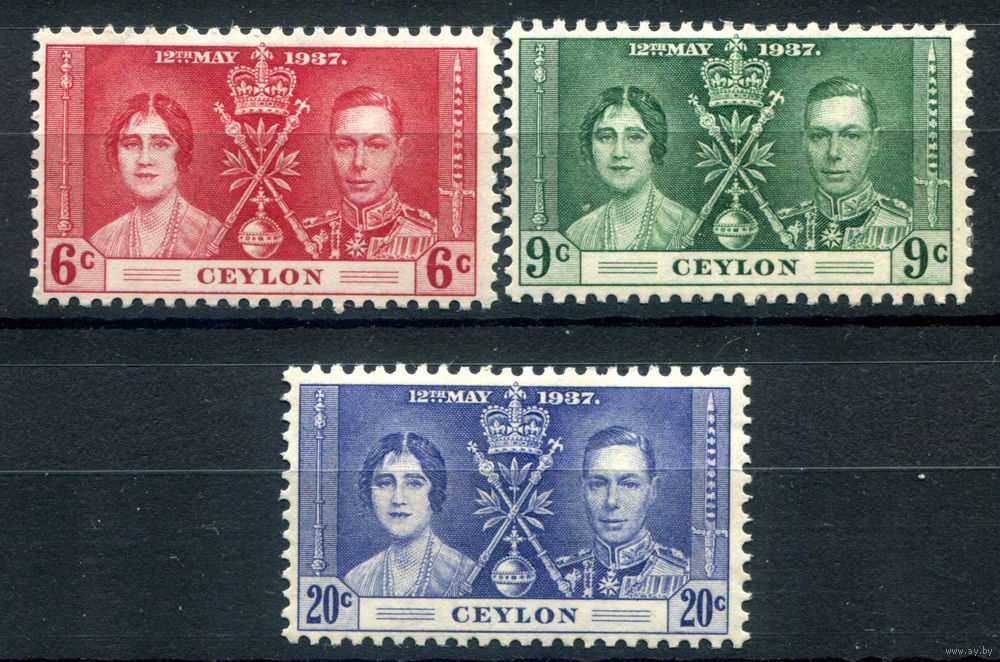 Британские колонии - Цейлон - 1937г. - коронация короля Георга VI и королевы Елизаветы - 3 марки - полная серия, MLH, последняя марка с пузырьками на клее [Mi 227-229]. #2-Bc-D-KS-4