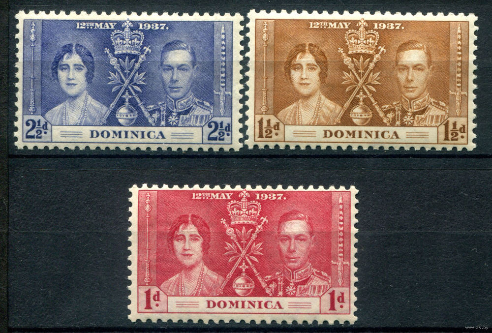 ![Британские колонии - Доминика - 1937г. - коронация короля Георга VI и королевы Елизаветы - 3 марки - полная серия, MH [Mi 90-92]. #2-Bc-130-A-2](https://s3-lot.aystatic.by/550x510/985/855/5040/5040855985_0.jpg)