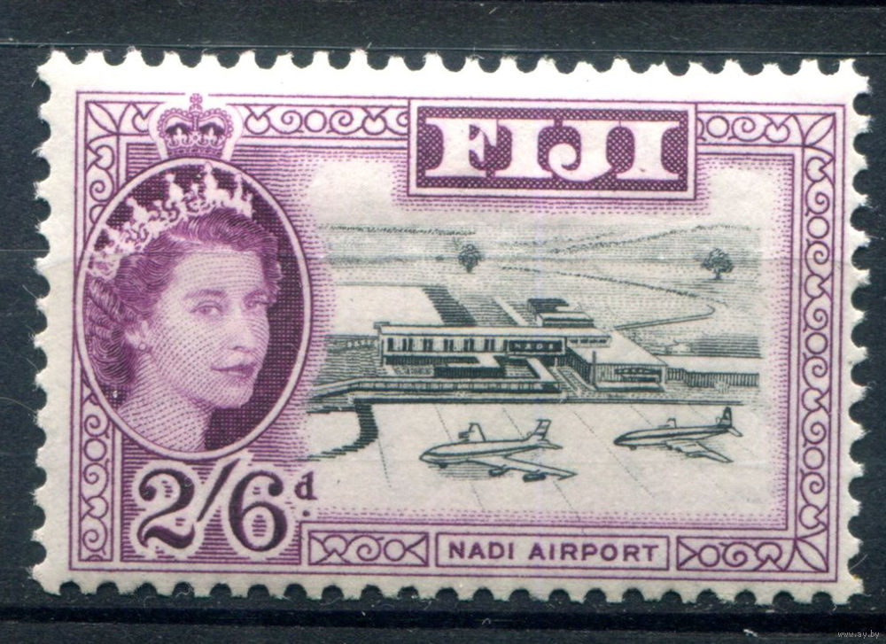 Британские колонии - Фиджи - 1959/63г. - аэропорт, Елизавета II, 2/6 Sh - 1 марка - MH [Mi 150]. #4-B6-124-A-1
