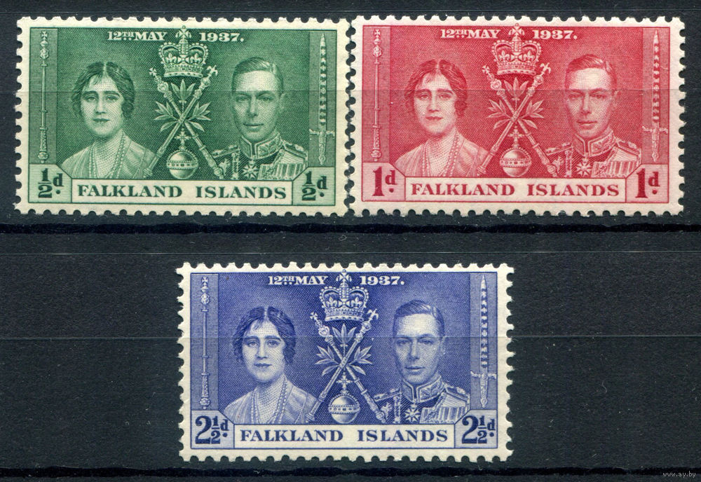 Британские колонии - Фолклендские острова - 1937г. - коронация короля Георга VI и королевы Елизаветы - 3 марки - полная серия, MLH, MH [Mi 75-77]. #2-Bc-D-KS-4