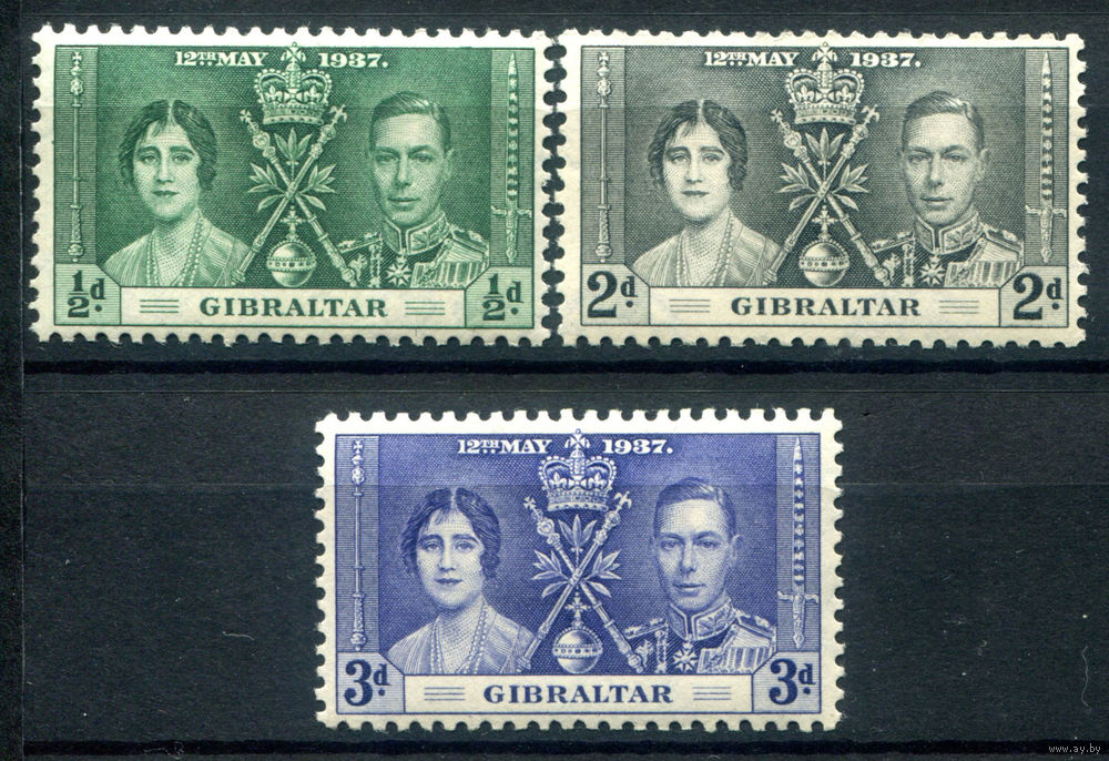 Британские колонии - Гибралтар - 1937г. - коронация короля Георга VI и королевы Елизаветы - 3 марки - полная серия, MLH, MH [Mi 104-106]. #2-Bc-132-B-2