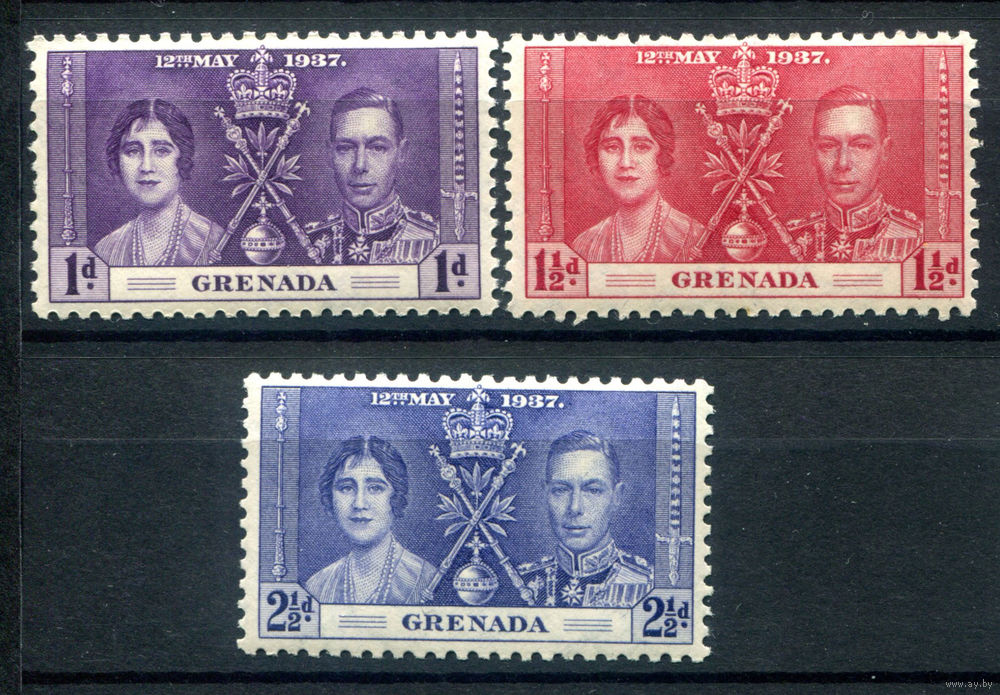 Британские колонии - Гренада - 1937г. - коронация короля Георга VI и королевы Елизаветы - 3 марки - полная серия, MH, MNH [Mi 120-122]. #2-Bc-132-B-2