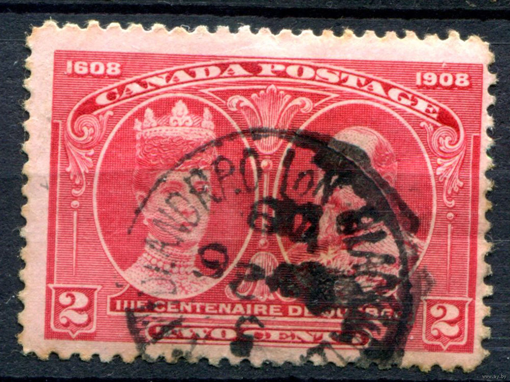 Британские колонии - Канада - 1908г. - король Георг V, королева Мария, 300 лет основания Квебека, 3 с - 1 марка - гашёная [Mi 86]. #3-WB-100-A-1