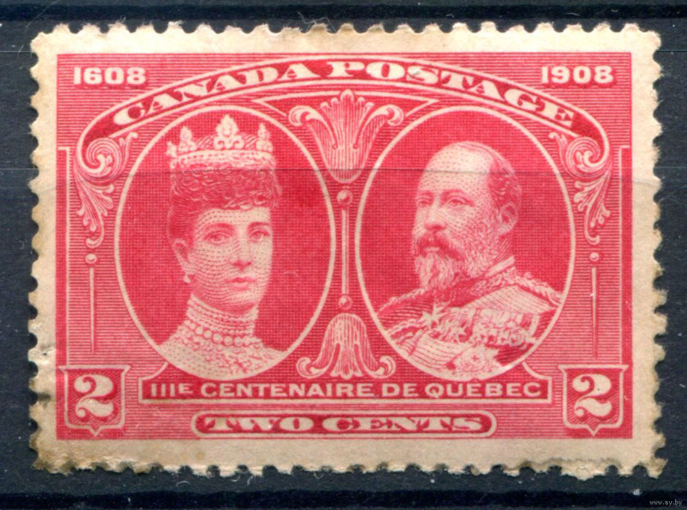 Британские колонии - Канада - 1908г. - король Георг V, королева Мария, 300 лет основания Квебека, 3 с - 1 марка - MH с пятнами на лицевой стороне и по перфорации? [Mi 86]. #3-WB-80-A-1