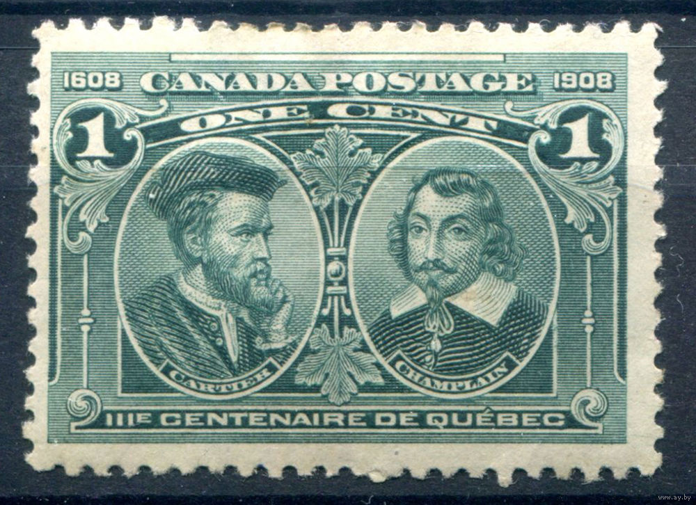 Британские колонии - Канада - 1908г. - мореплаватели, 300 лет основания Квебека, 1 с - 1 марка - MH с пятнышками по перфорации, сверху есть маленькое тонкое место [Mi 85]. #3-WB-80-A-1