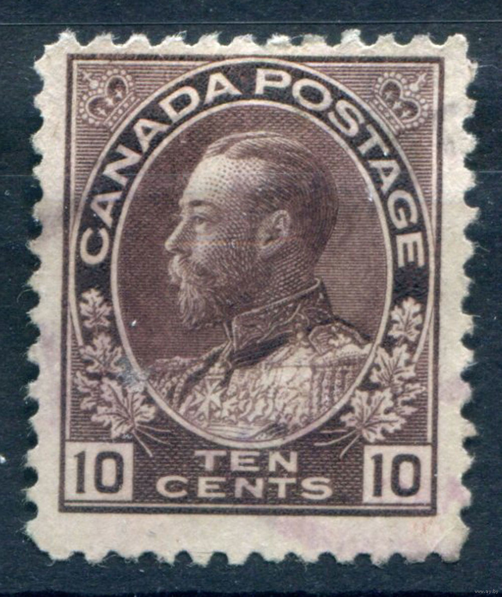 Британские колонии - Канада - 1911/18г. - король Георг V, 10 с - 1 марка - гашёная, есть небольшое утончение в правом верхнем уголке [Mi 97]. #3-WB-82-A-1