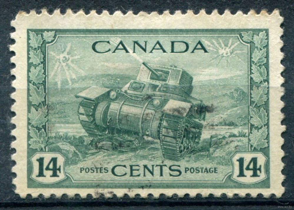 Британские колонии - Канада - 1942/43г. - военное производство, танк, 14 с - 1 марка - гашёная [Mi 226]. #3-WB-102-A-2