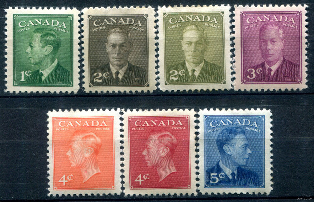 Британские колонии - Канада - 1949/51г. - король Георг VI - 7 марок - полная серия, MH, номинал 1 с с небольшим тонким местом снизу [Mi 250 - A255]. #3-WB-90-A-2
