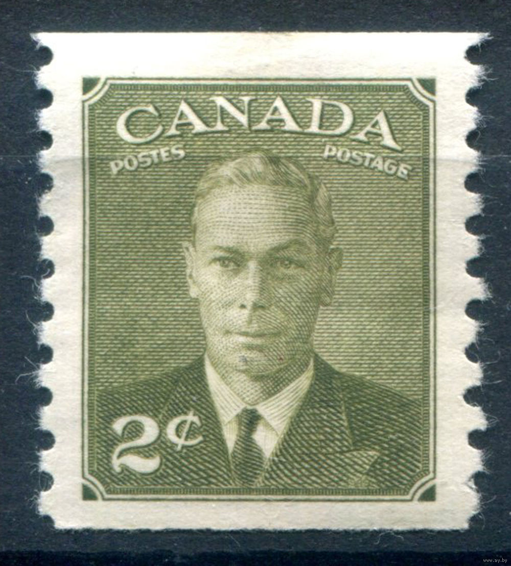 Британские колонии - Канада - 1949/51г. - король Георг VI, перфорация 9 1/2:б/п, 2 с оливковая - 1 марка - MH, есть маленькое тонкое место на зубчике перфорации [Mi 252 D]. #3-WB-80-A-2