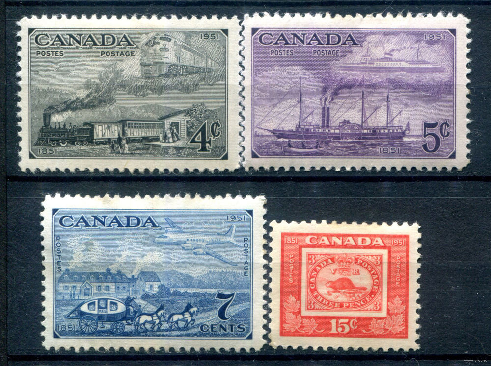 ![Британские колонии - Канада - 1951г. - 100 лет канадским маркам - 4 марки - полная серия, MH [Mi 266-269]. #3-WB-88-A-2](https://s1-lot.aystatic.by/550x510/991/965/5039/5039965991_0.jpg)