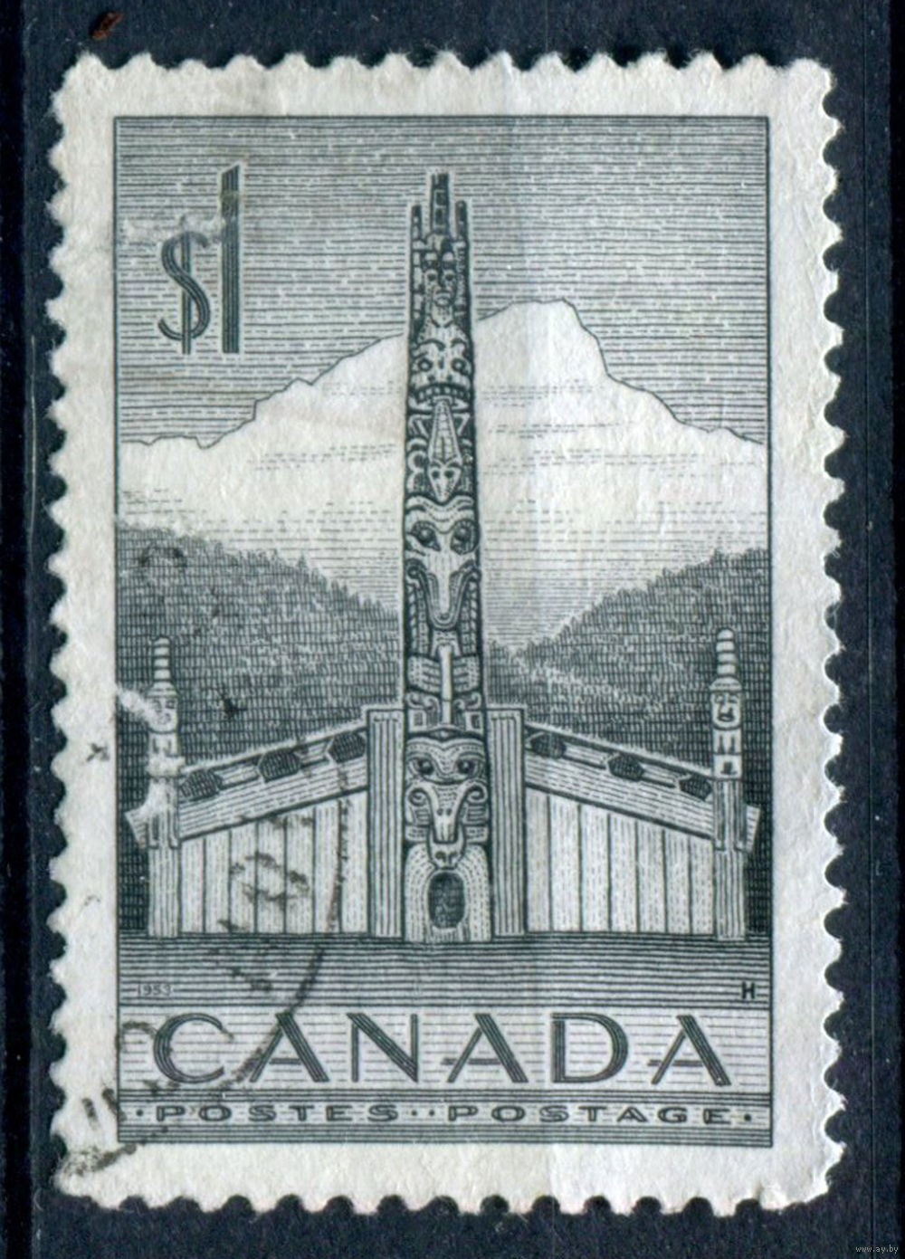 Британские колонии - Канада - 1952/53г. - индийский тотем, 1 $ - 1 марка - гашёная [Mi 276]. #3-WB-100-A-2
