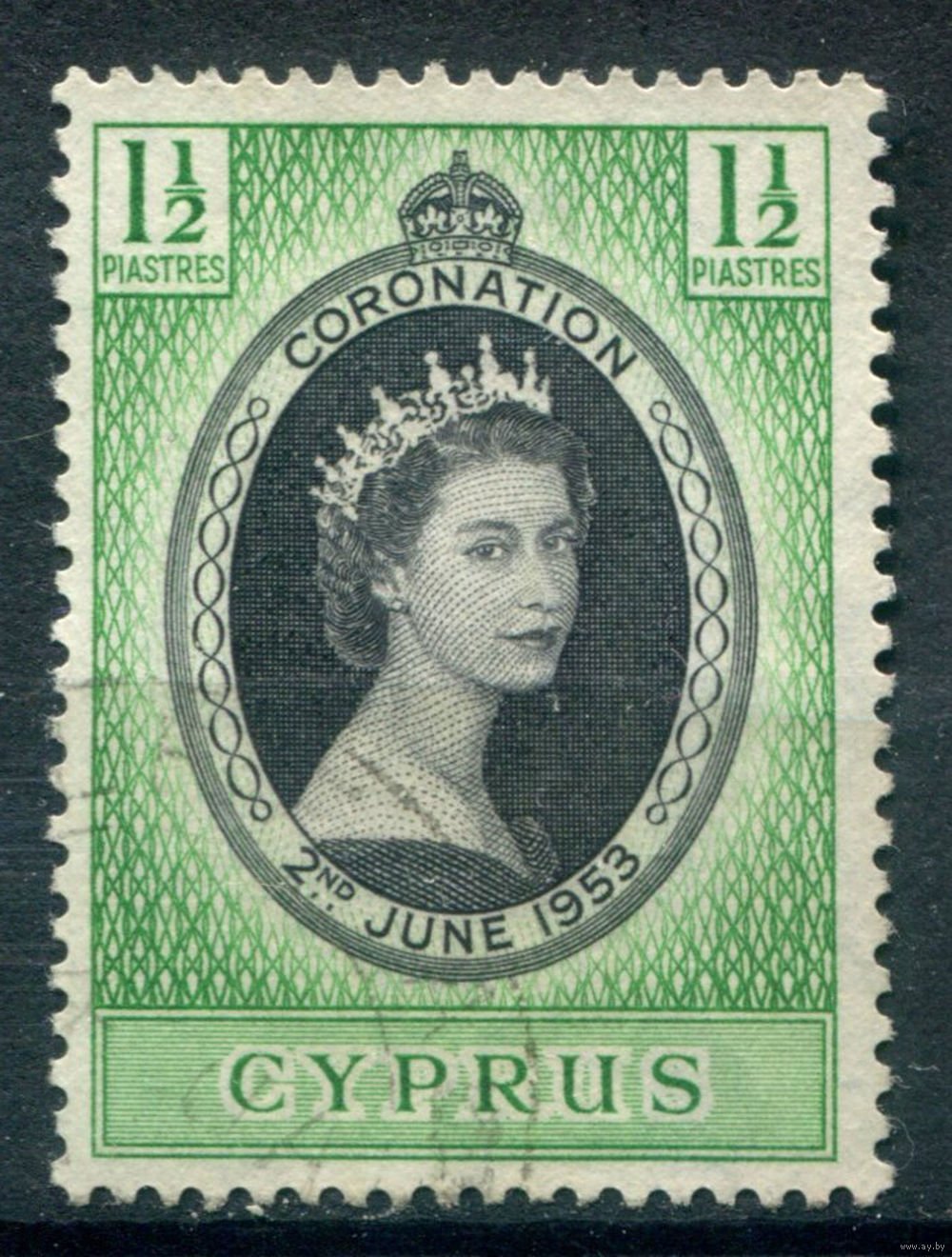 Британские колонии - Кипр - 1953г. - коронация королевы Елизаветы II - 1 марка - полная серия, гашёная [Mi 163]. #4-B6-128-A-1