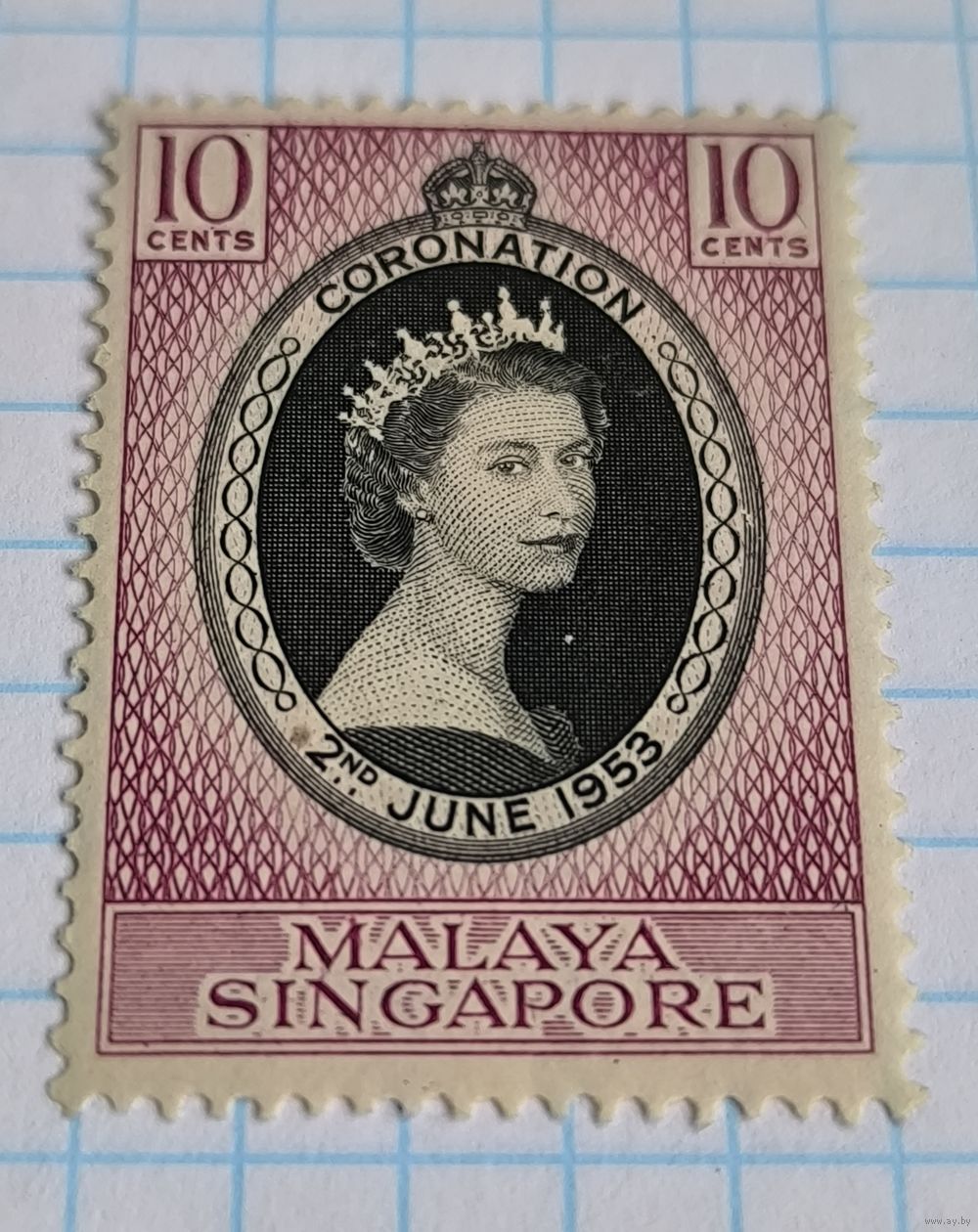 БРИТАНСКИЕ КОЛОНИИ МАЛАЙЯ СИНГАПУР 1953 ГОД КОРОНАЦИЯ ЕЛИЗАВЕТЫ II