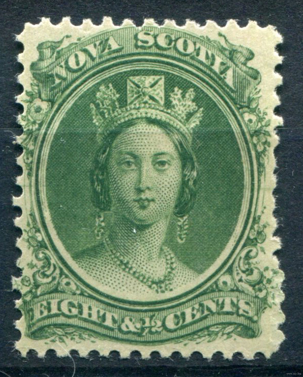 Британские колонии - Новая Шотландия - 1860/63г. - королева Виктория, 8 1/2 с - 1 марка - MLH, жёлтые пятна на клее [Mi 8]. #3-WB-76-A-1