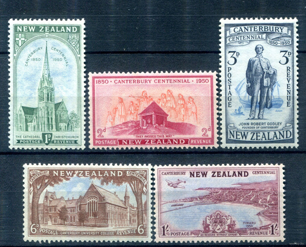 Британские колонии - Новая Зеландия - 1950г. - 100 лет Кентербери, архитектура, ландшафты - 5 марок - полная серия, MNH [Mi 312-316]. #3-WB-86-A-1