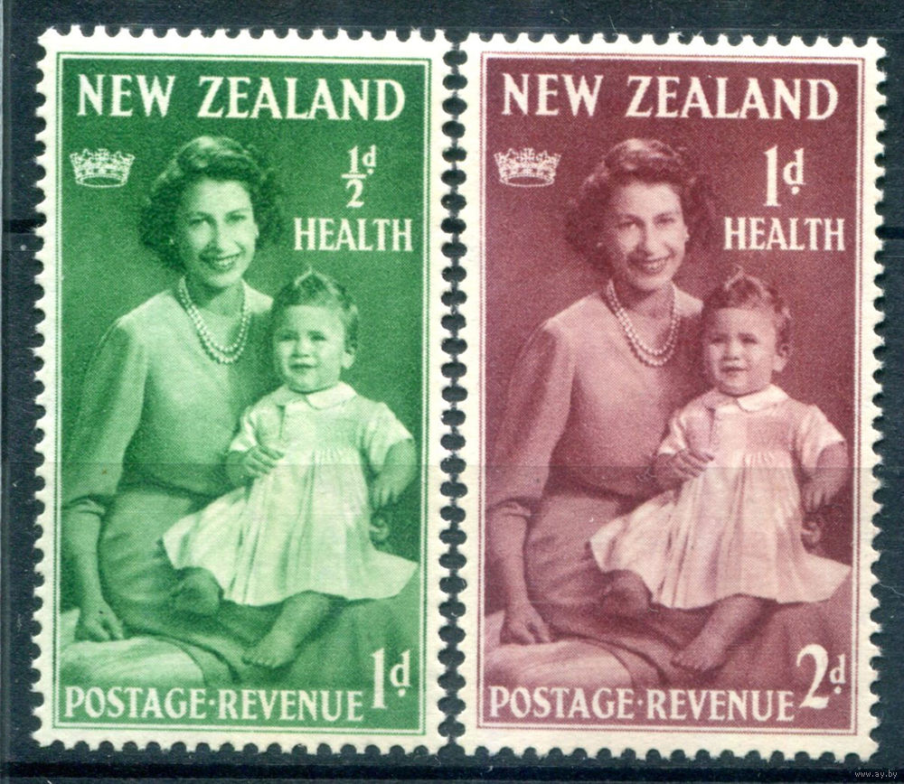 Британские колонии - Новая Зеландия - 1950г. - охрана здоровья, принцесса Елизавета и принц Чарльз - 2 марки - полная серия, MNH, незначительный дефект клея [Mi 310-311]. #3-WB-88-A-1