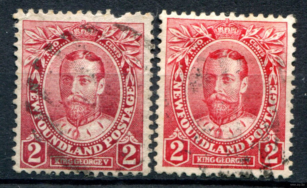 Британские колонии - Ньюфаундленд - 1911г. - король Георг V, коронация, разновидности цветов - 2 марки - гашёные [Mi 86]. #3-WB-100-A-1
