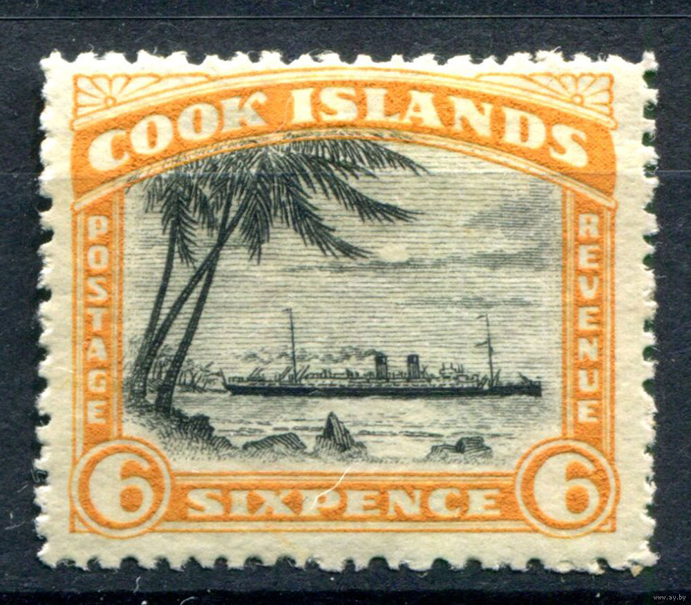 Британские колонии - Острова Кука - 1932/36г. - ландшафт, корабль, перфорация 14, wz 2, 6 P - 1 марка - MH [Mi 43]. #3-WB-76-A-1