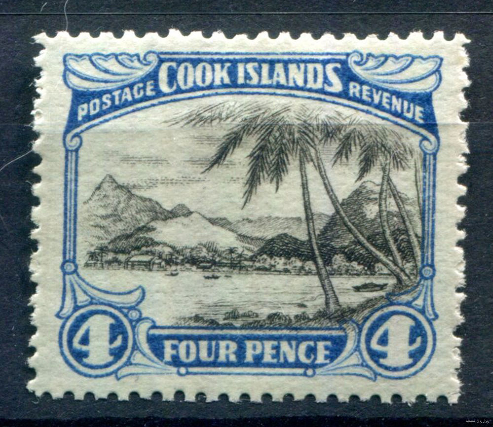 Британские колонии - Острова Кука - 1932/36г. - ландшафт, перфорация 14, wz 2, 4 P - 1 марка - MLH [Mi 42]. #3-WB-76-A-1