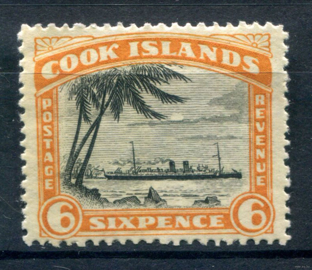 Британские колонии - Острова Кука - 1944/46г. - ландшафт, корабль, перфорация 14, wz 3, 6 P - 1 марка - MH [Mi 66]. #3-WB-80-A-1