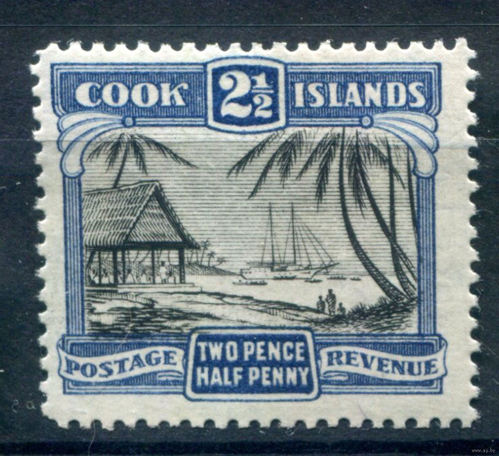 Британские колонии - Острова Кука - 1944/46г. - порт, перфорация 14, wz 3, 2 1/2 P - 1 марка - MH [Mi 64]. #3-WB-80-A-1