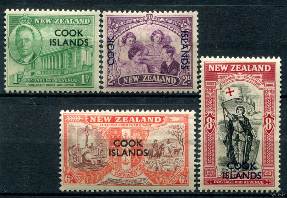 Британские колонии - Острова Кука - 1946г. - ландшафты, известные люди, надпечатка cook islands - 4 марки - полная серия, MLH, MH [Mi 74-77]. #3-WB-92-A-1