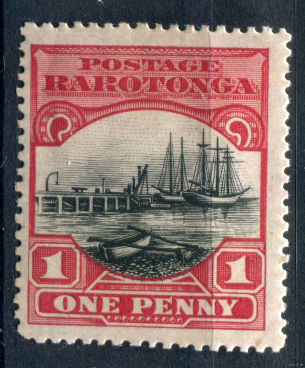 Британские колонии - Острова Кука, Раротонга - 1920г. - корабли, порт, 1 Р - 1 марка - MH [Mi R 15]. #3-WB-80-A-1