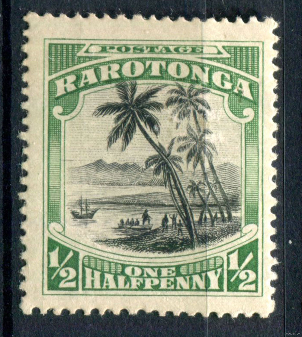 Британские колонии - Острова Кука, Раротонга - 1920г. - пальмы, 1/2 Р - 1 марка - MH, потрескавшийся клей [Mi R 14]. #3-WB-80-A-1