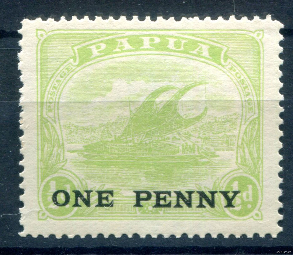 Британские колонии - Папуа - 1917г. - лакатой, парусное судно, надпечатка 1 P на 1/2 P - 1 марка - MLH [Mi 63]. #3-WB-82-A-1