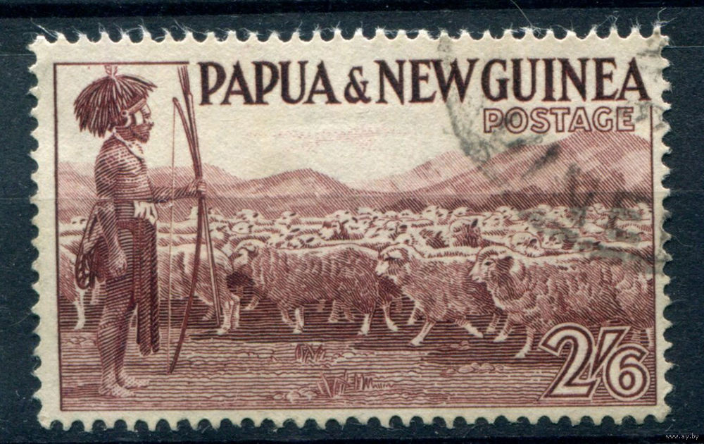 Британские колонии - Папуа Новая Гвинея - 1952/60г. - ландшафты, виды, местные мотивы, 2 6 Sh - 1 марка - гашёная [Mi 20]. #3-WB-90-A-2