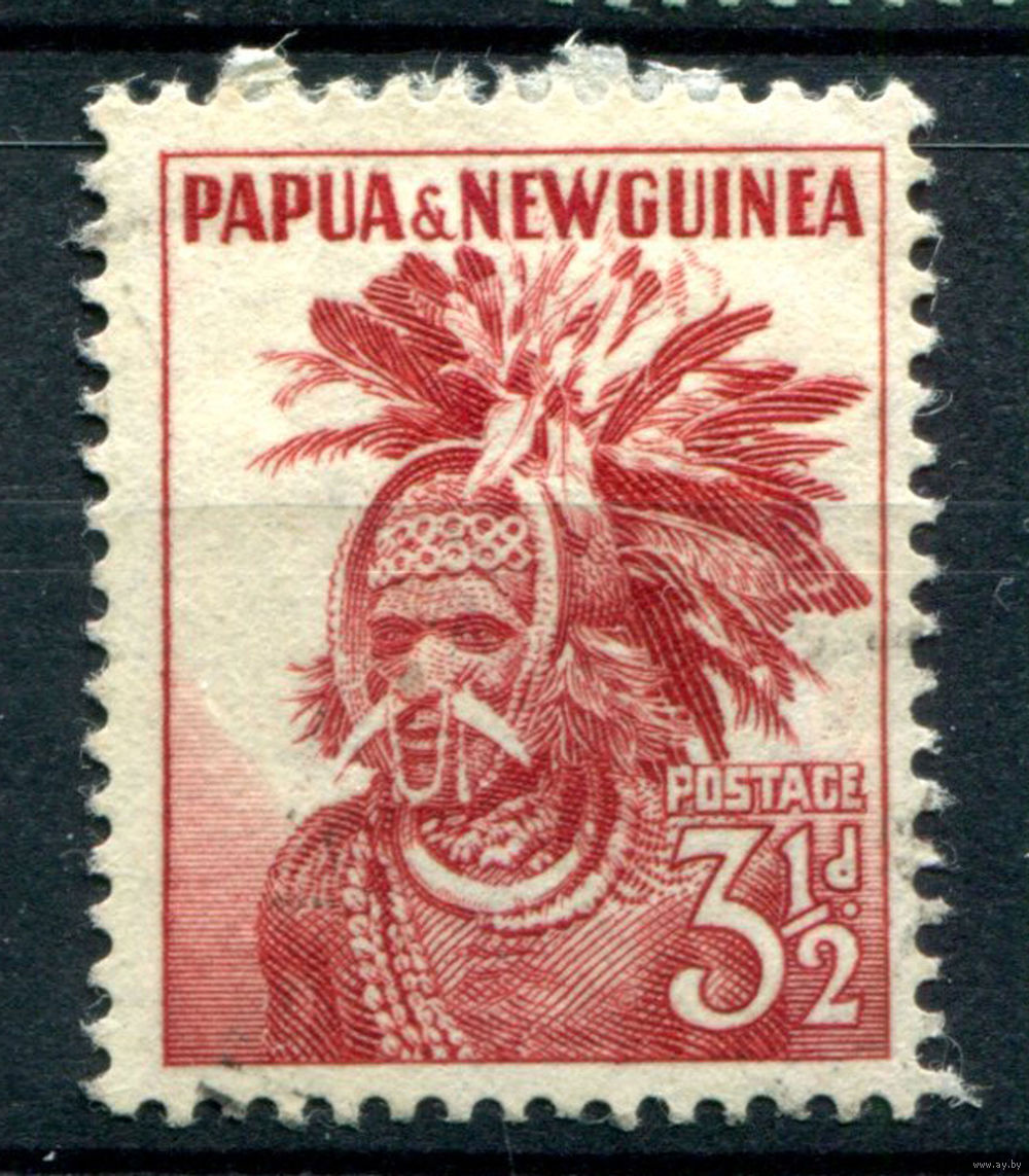Британские колонии - Папуа Новая Гвинея - 1952/60г. - ландшафты, виды, местные мотивы, 3 1/2 P, кр - 1 марка - MH с пятнами на лицевой стороне [Mi 6]. #3-WB-90-A-1