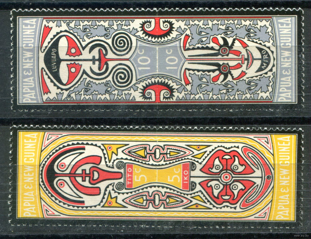 ![Британские колонии - Папуа Новая Гвинея - 1969г. - фольклор, саги - 4 марки - 2 сцепки - полная серия, MNH [Mi 154-157]. #3-WB-Z-1-24](https://s3-lot.aystatic.by/550x510/694/822/5039/5039822694_0.jpg)