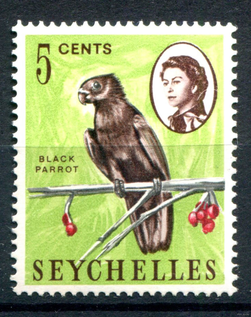 Британские колонии - Сейшелы - 1962/67г. - королева Елизавета II, ландшафты, птица, 5 с - 1 марка - MNH [Mi 195]. #3-WB-80-A-1
