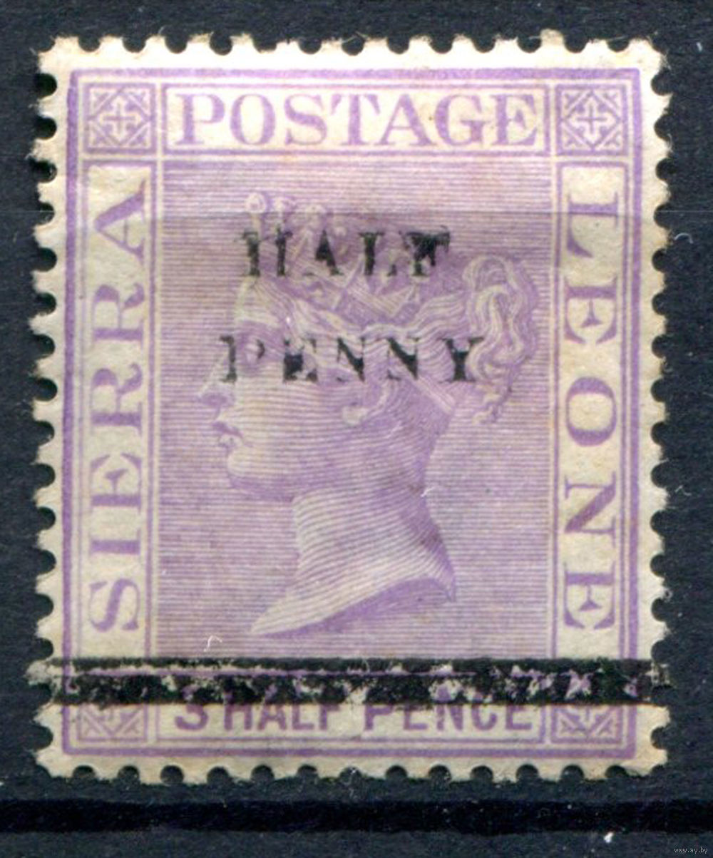 Британские колонии - Сьерра-Леоне - 1893г. - королева Виктория, надпечатка Half Penny на 1 1/2 P, wz 2 - 1 марка - MH [Mi 23]. #4-B5-126-A-1