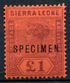 Британские колонии - Сьерра-Леоне - 1896/97г. - королева Виктория, надпечатка Specimen (образец), 1 Pound - 1 марка - MH [Mi 36]. #4-B5-110-A-2