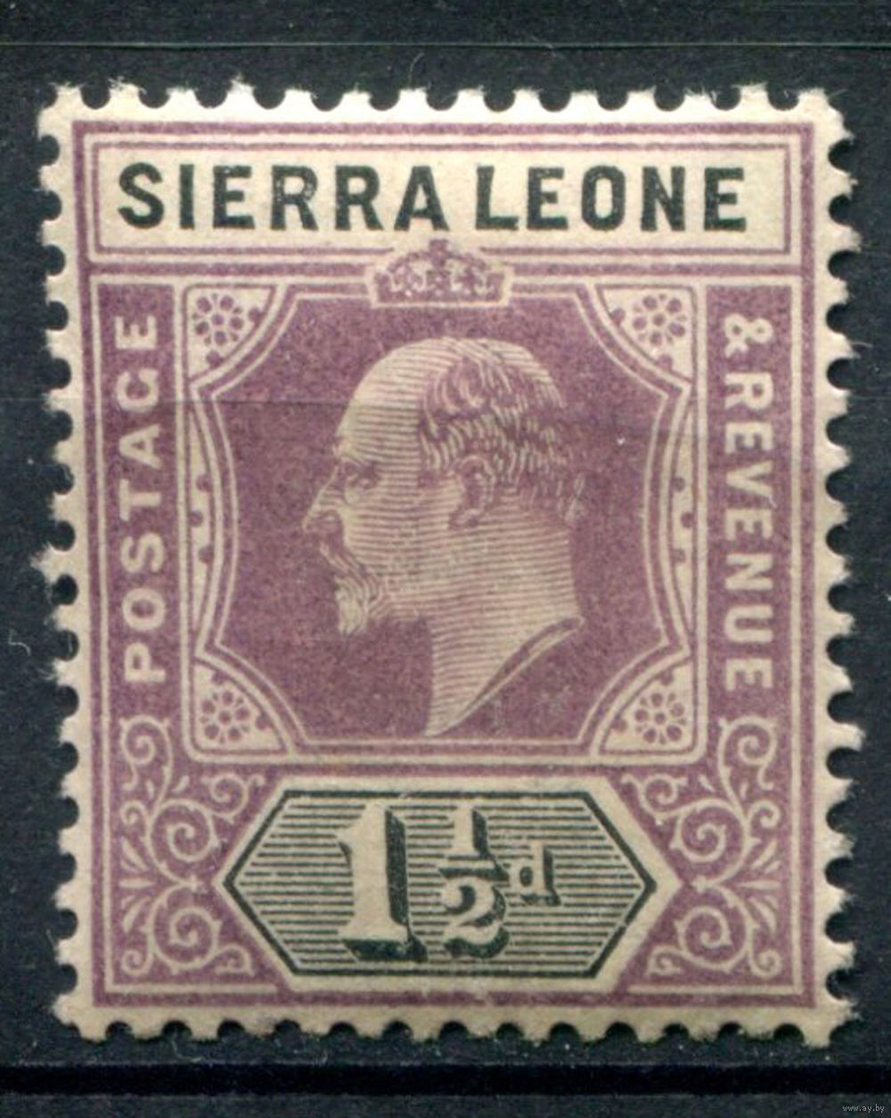 ![Британские колонии - Сьерра-Леоне - 1903г. - король Эдуард VII, 1 1/2 P - 1 марка - MNH, лёгкое пожелтение клея [Mi 44]. #4-B5-118-A-1](https://s2-lot.aystatic.by/550x510/822/580/5040/5040580822_0.jpg)