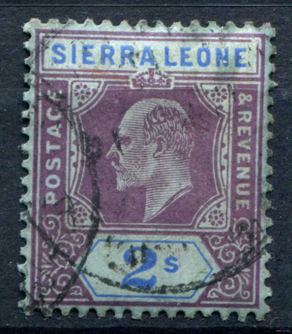 Британские колонии - Сьерра-Леоне - 1907/10г. - король Эдуард VII, 2 Sh - 1 марка - гашёная с клеем [Mi 78]. #4-B5-126-A-1