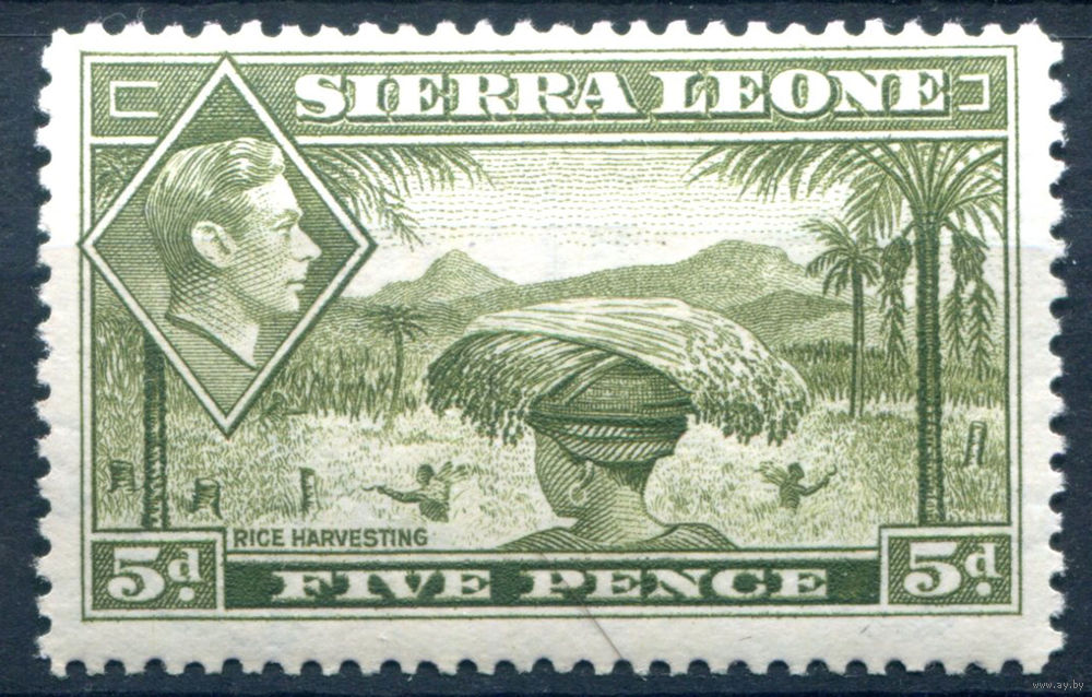 Британские колонии - Сьерра-Леоне - 1938г. - ландшафты, король Георг VI, 5 P - 1 марка - MNH с надписью карандашом на клее [Mi 159]. #4-B5-126-A-1