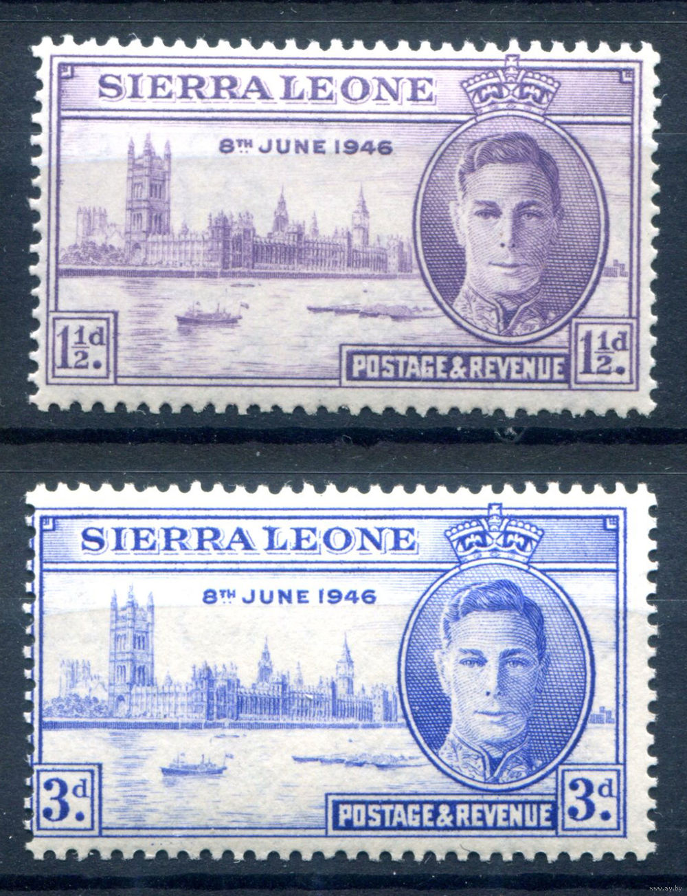 Британские колонии - Сьерра-Леоне - 1946г. - Годовщина Победы во Второй Мировой войне, король Георг VI, здание парламента в Лондоне - 2 марки - полная серия, MH [Mi 167-168]. #4-B5-126-A-1