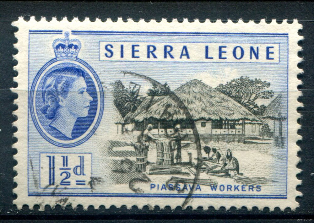 Британские колонии - Сьерра-Леоне - 1956г. - ландшафты, королева Елизавета II, 1 1/2 P - 1 марка - гашёная [Mi 178]. #4-B5-118-A-1