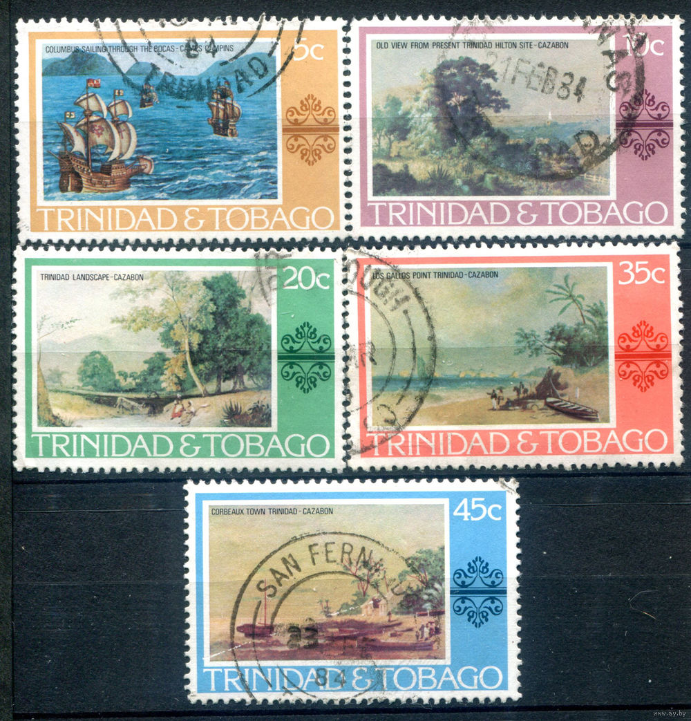 Британские колонии - Тринидад и Тобаго - 1976г. - картины с ландшафтами - 5 марок - полная серия, гашёные [Mi 345-349]. #4-B5-124-A-2
