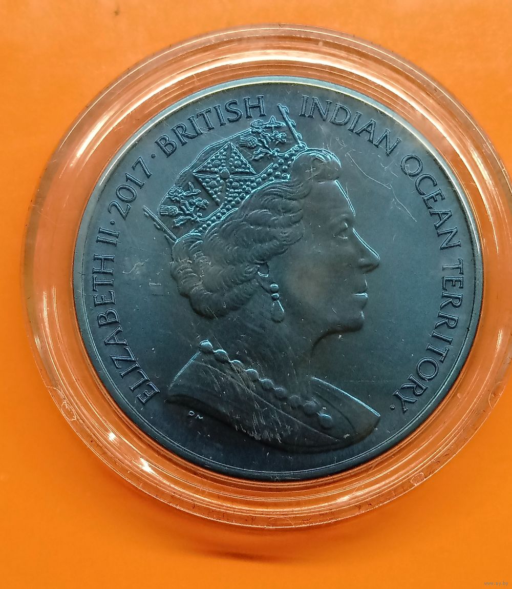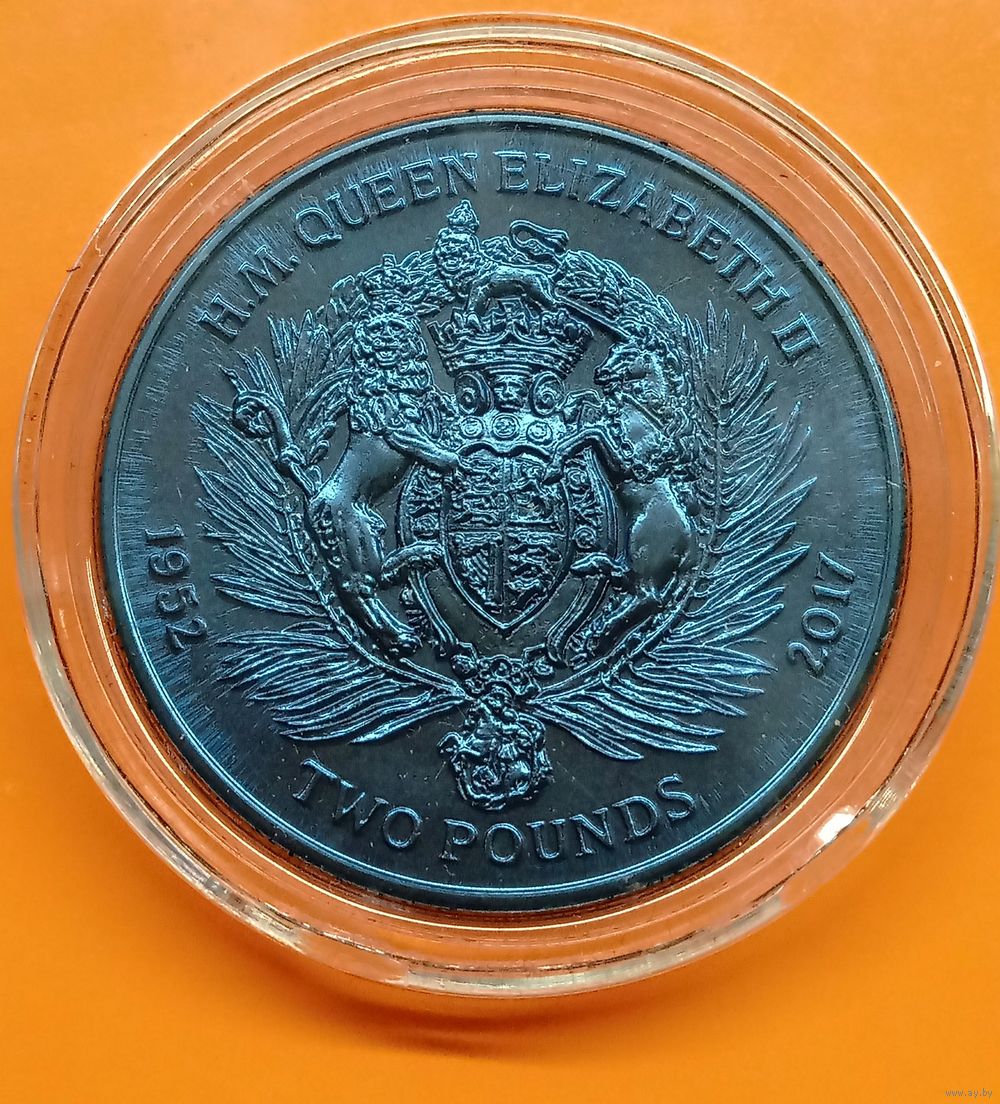 Красивая монета из титана синего цвета