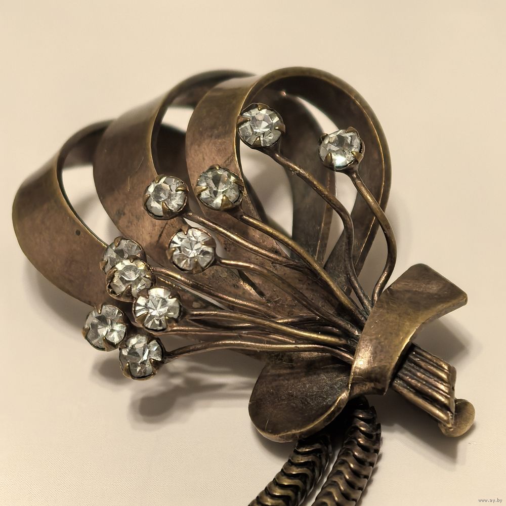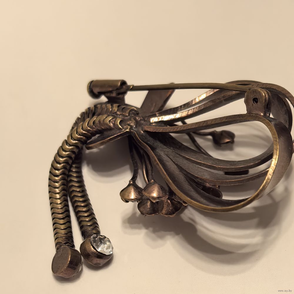 Шикарная крупная винтажная брошь в отличном состоянии. Шомполтный замочек. Бронза