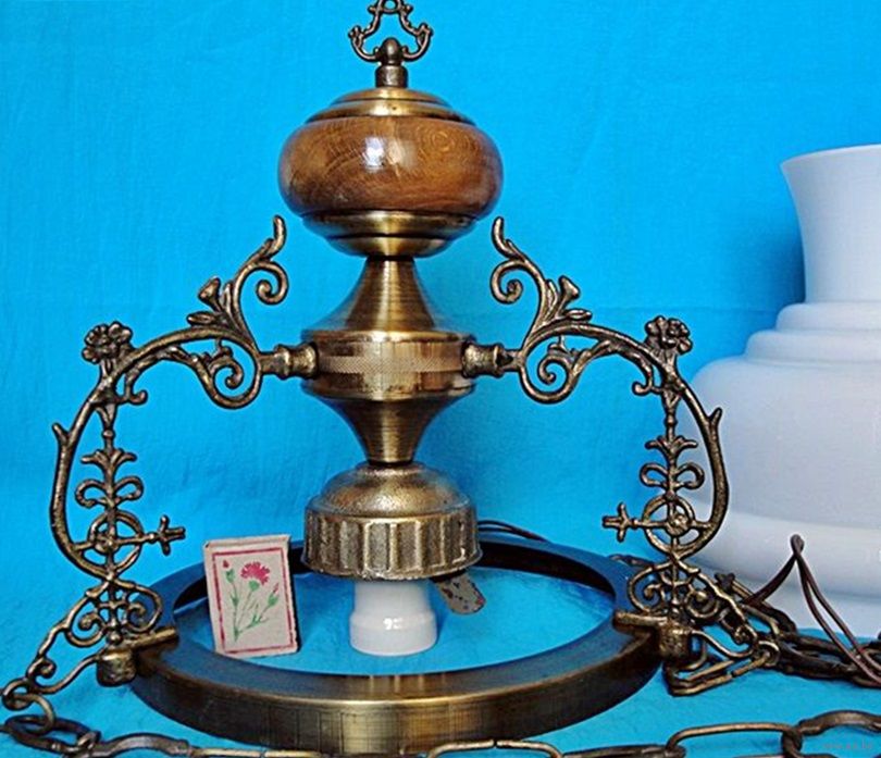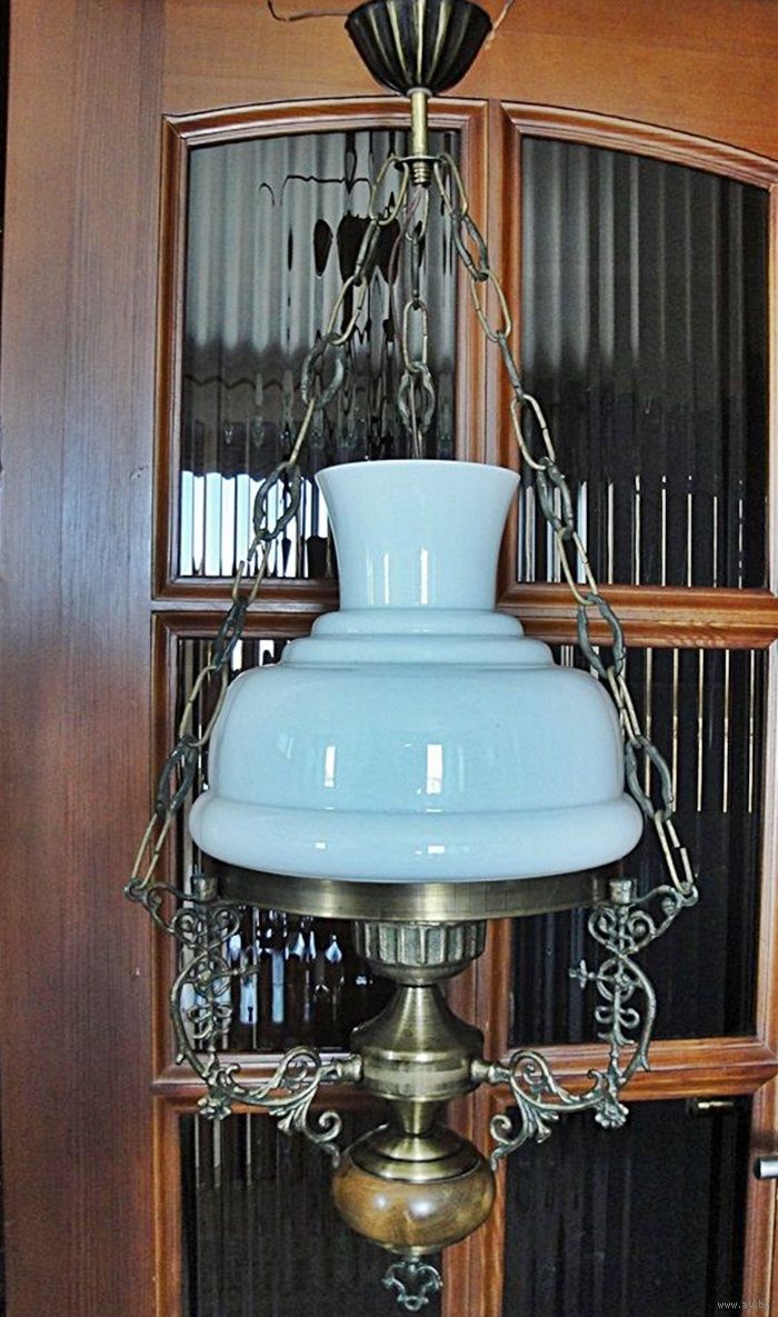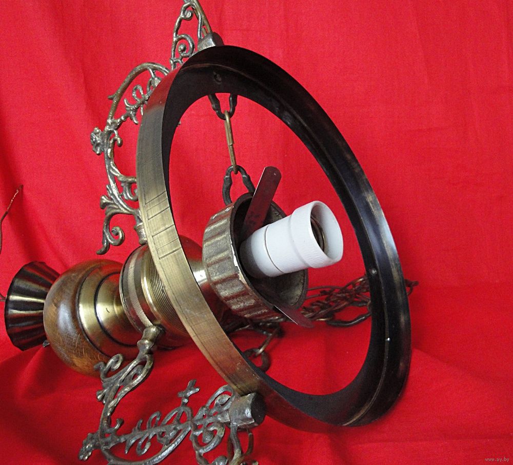 Прекрасная отделка, красивое бронзовое литьё, латунь, дерево, стекло, керамический патрон, родная проводка, всё в оригинале, высота 80 см.