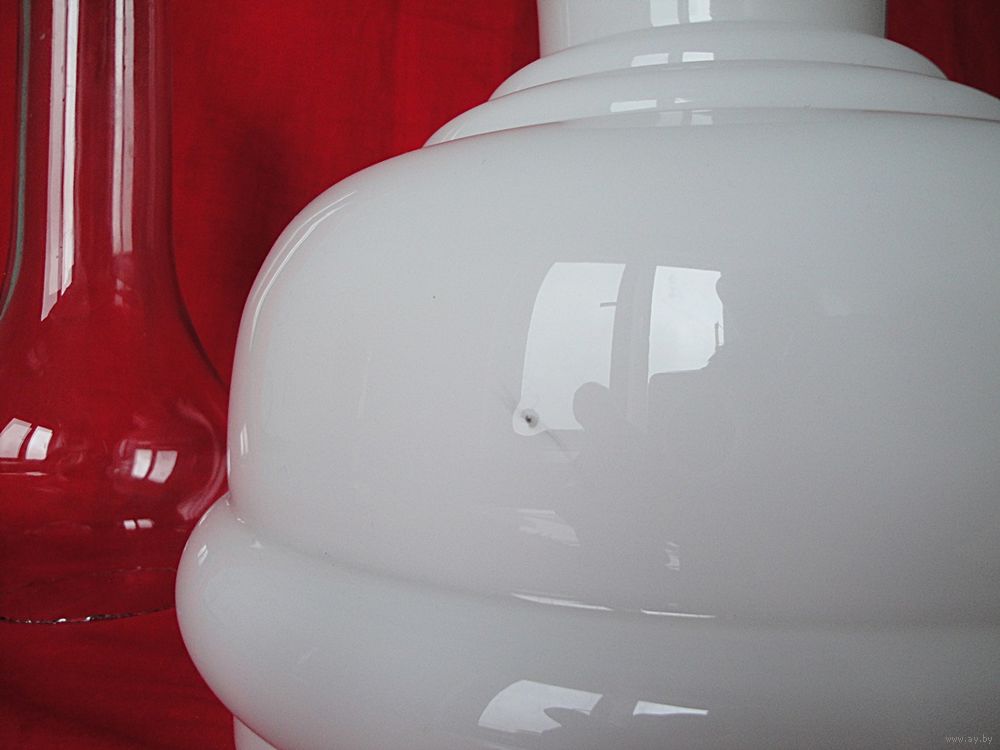 Покупалась в 1988-89 г., в государственном магазине "Универмаг". Последние 35 лет люстра находится просто в картонной коробке. Подключили работает, на большом плафоне имеется какая-то точка (см. последнее фото), внутри плафона как не просматривается, может дефект или заводская отливка? Колба стеклянная целая, по краям есть несколько мелких сколов, внешний вид совсем не портят.