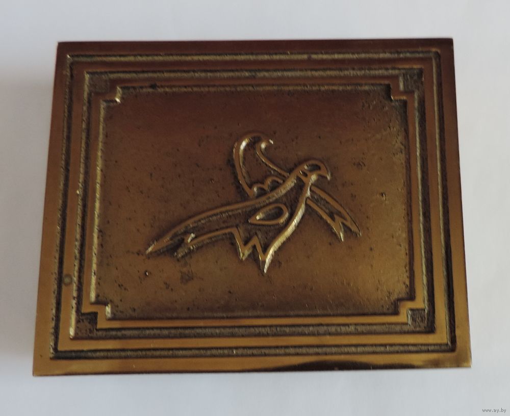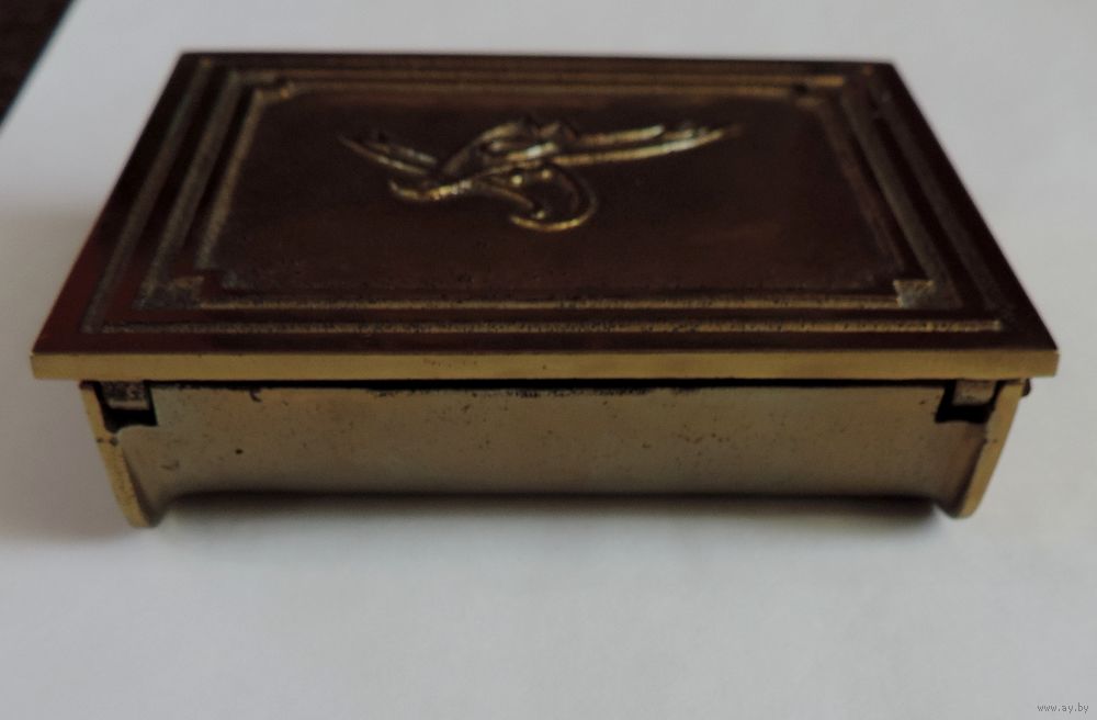 Бронзовая шкатулка "Голуби" 60-70-е годы. Размер 8-8.7 см. Высота 3 см.